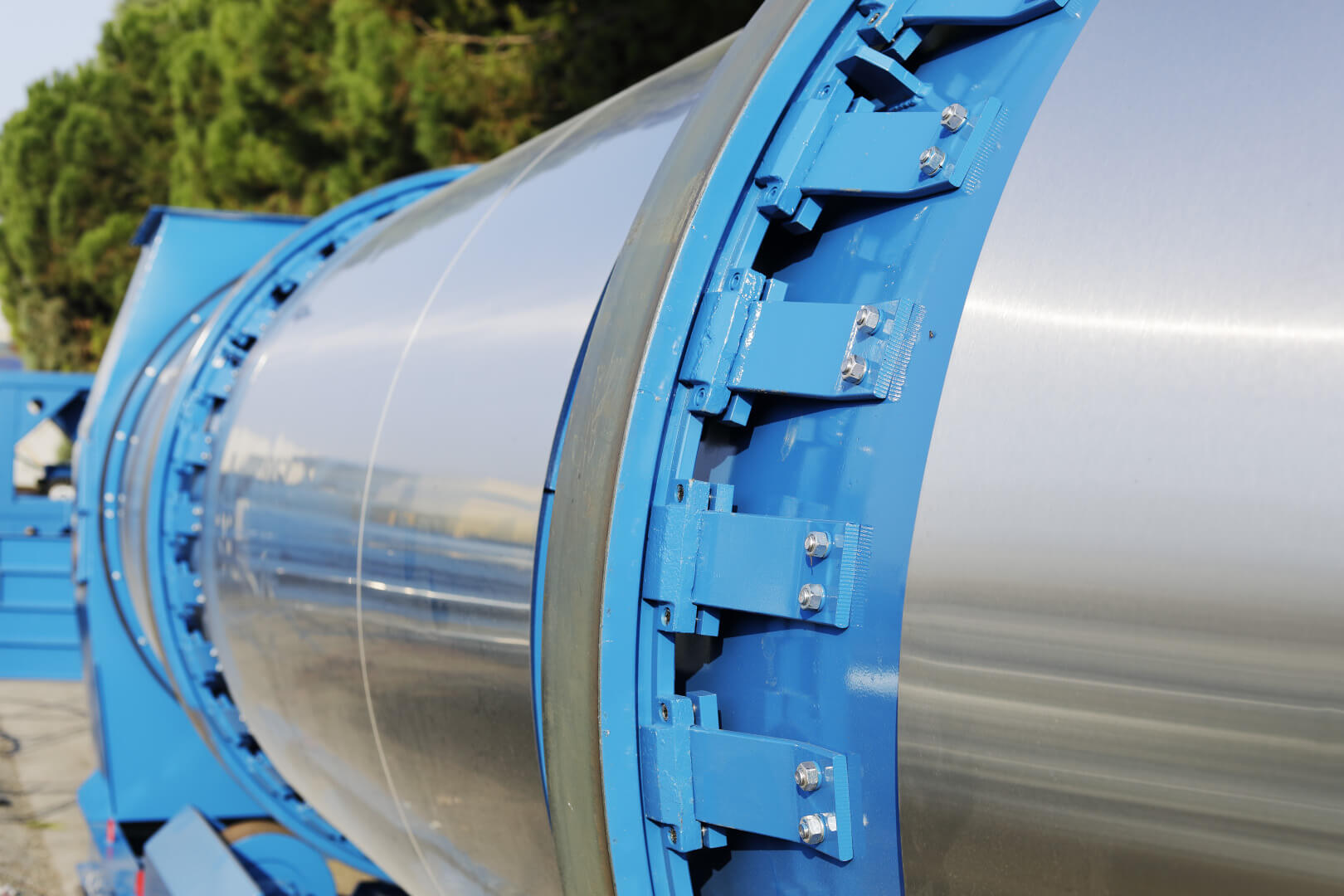E-MAK dryers are made of materials resistant to deformation and wear. The body and drive rings are held together with using bolts only (no welding) which helps to avoid the defects due to high and sudden temperature changes. Dryer rings and rollers are made of special, long-lasting forged steel. Insulated with rock wool and made of stainless steel, outer body consists of non-welded compensation springs that are easy to replace. With the help of these compensation springs the body load is distributed evenly and the body becomes flexible enough to meet the thermal expansions.