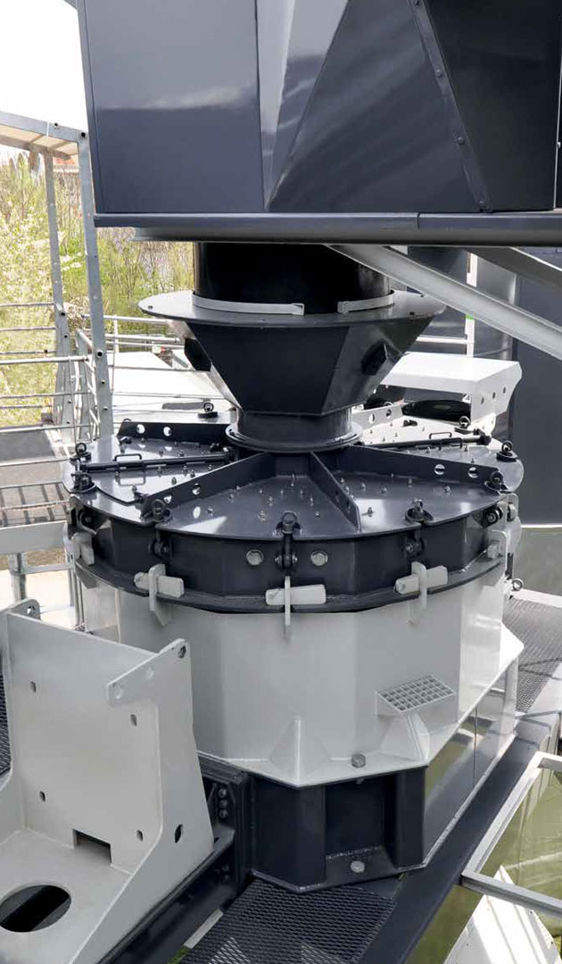 Les broyeurs à axe vertical - Systèmes de Préparation d’Agrégats –constituent une alternative aux broyeurs tertiaires. Ils sont utilisés pour broyer tout type de matériau dur ou abrasif tel que le basalte de taille moyenne, le granit et obtenir, enfin, du sable de 0 à 5 mm. Ces broyeurs ont un rapport de sable élevé et un très bon indice de forme.