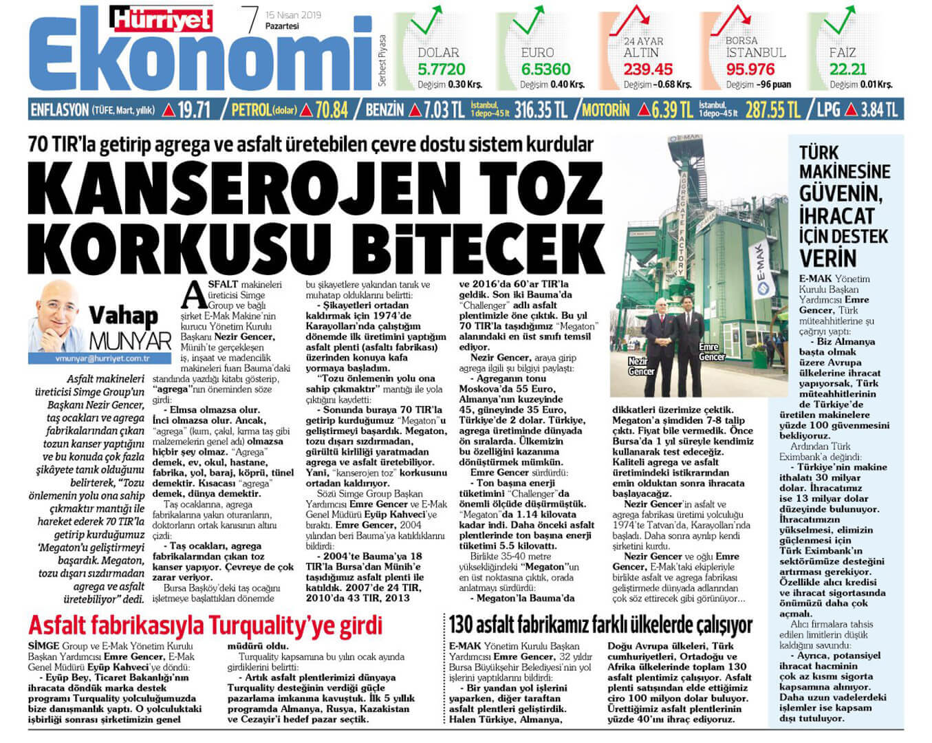 Artık asfalt plentlerimizi dünyaya Turquality desteğinin verdiği güçle pazarlama imkanına kavuştuk. İlk beş yıllık programda Almanya, Rusya, Kazakistan ve Cezayir’i hedef pazar seçtik.